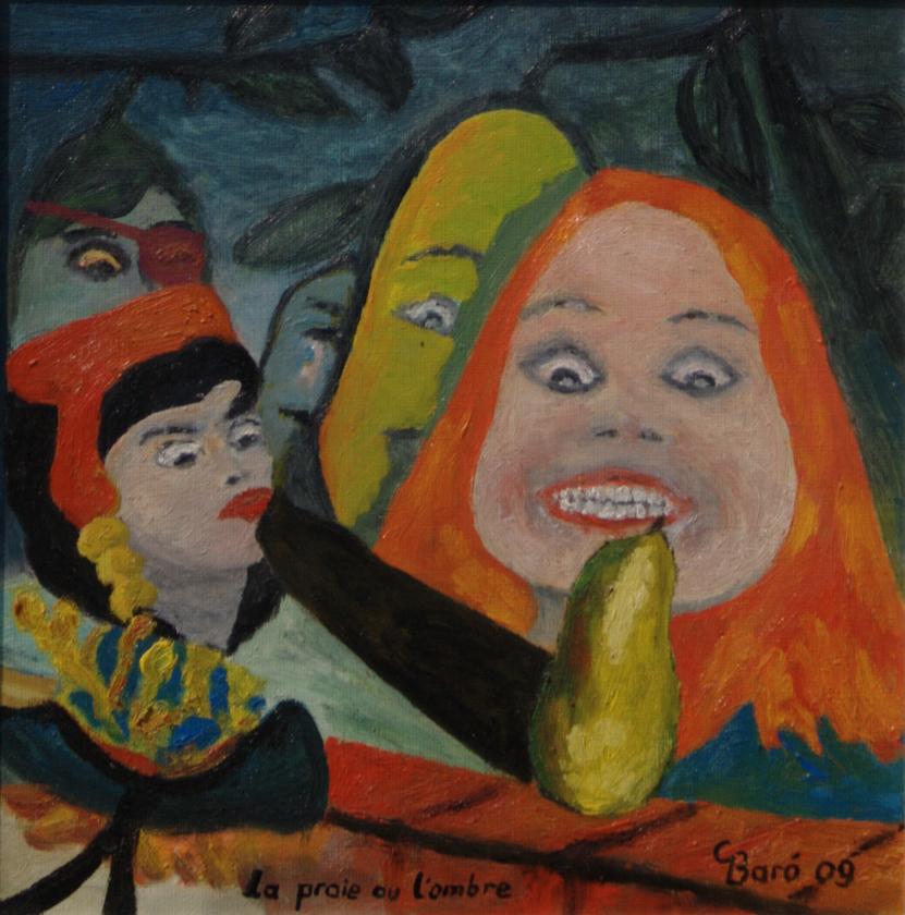 Combat de femmes. Eva se poirifie tant est forte sa gourmandise. Elle croquera le fruit au risque d’être chassée du Paradis. Vaincue, résignée, Adama se contentera de l’ombre évanescente.